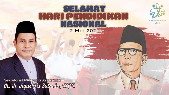 SAMARINDA – Sekretaris DPRD Samarinda Agus Tri Sutanto menyampaikan ucapan Selamat Hari Pendidikan Nasional tahun 2024, yang diperingati setiap tanggal 2 Mei.