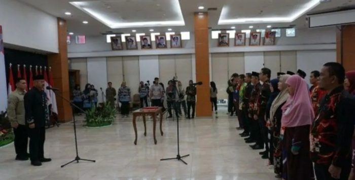Pelantikan 18 Pejabat Administrator, Pengawas dan Fungsional di lingkungan Pemerintah setempat di Ruang Serbaguna Kantor Bupati.