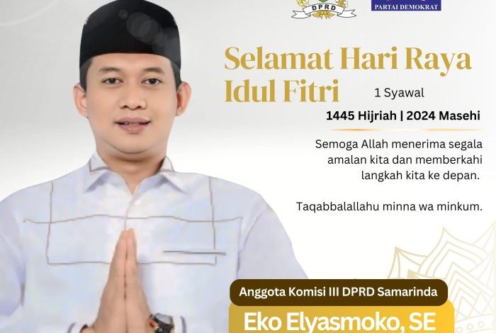 SAMARINDA – Anggota DPRD Samarinda dari Partai Demokrat Eko Elyasmoko menyampaikan ucapan Selamat Hari Raya Idul Fitri. Dan tak lupa menyampaikan permohonan maaf lahir dan bathin.