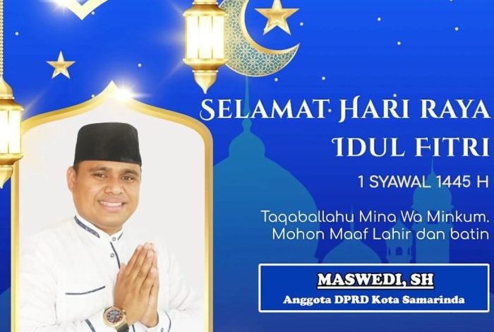 SAMARINDA – Anggota DPRD Samarinda dari Partai NasDem Maswedi menyampaikan ucapan Selamat Hari Raya Idul Fitri tahun 2024.