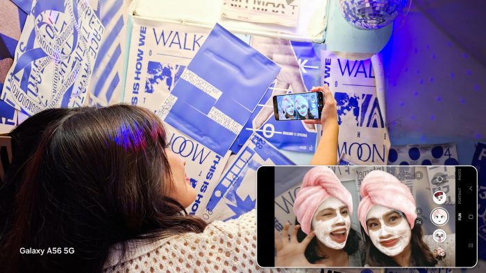 Liburan bareng teman nggak lengkap tanpa sesi foto-foto dan konten seru, kan? Untungnya, Galaxy A56 5G hadir dengan fitur-fitur kamera yang nggak cuma canggih, tapi juga fun dan praktis buat kamu yang suka berbagi momen.